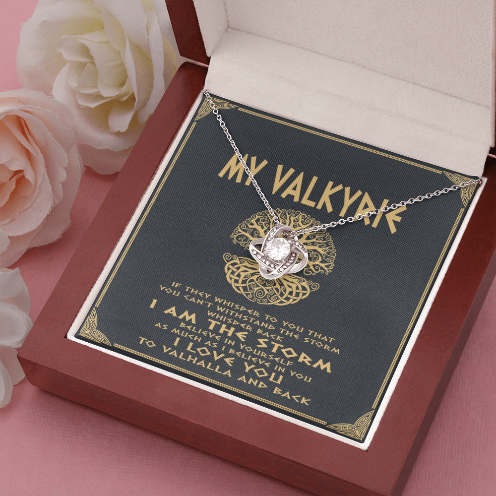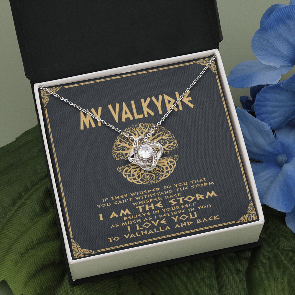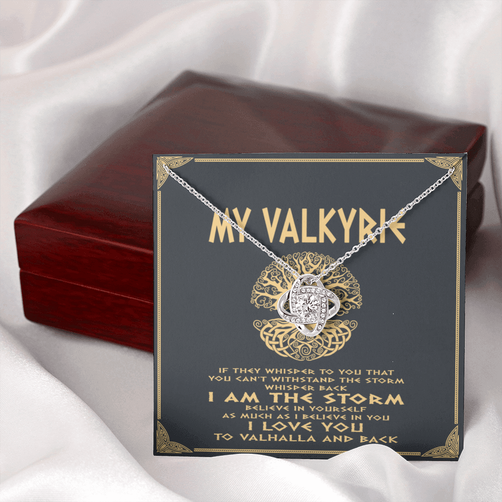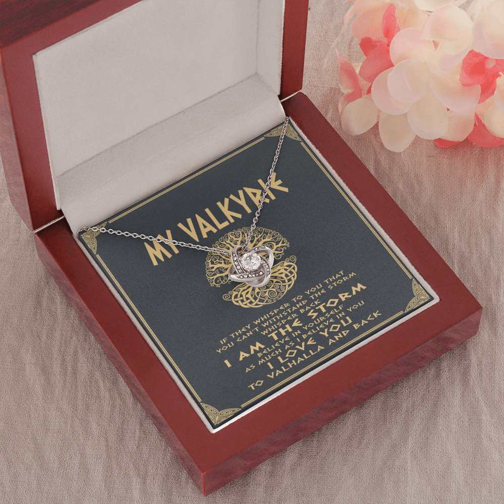 Viking love knot necklace dad mom to daughter, if they whisper to you you can't withstand the storm, whisper back i am the storm