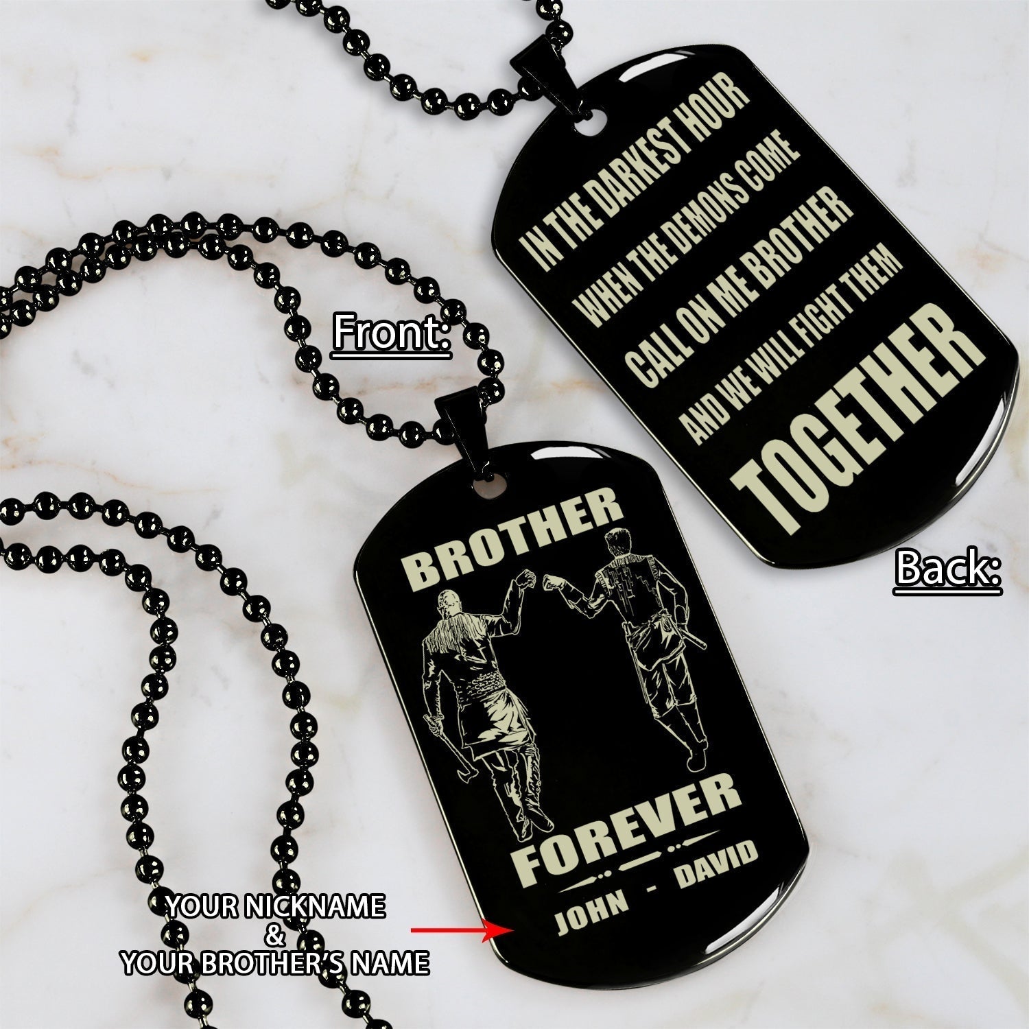 Spartan Call on me brother engraved white dog tag double sided. gift for brothers