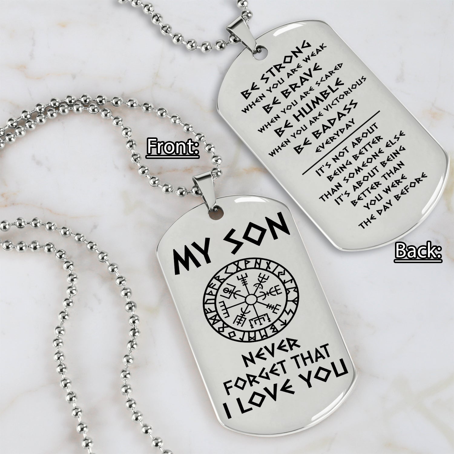 Viking engraved double sided dog tag dad to son be strong when you are weak